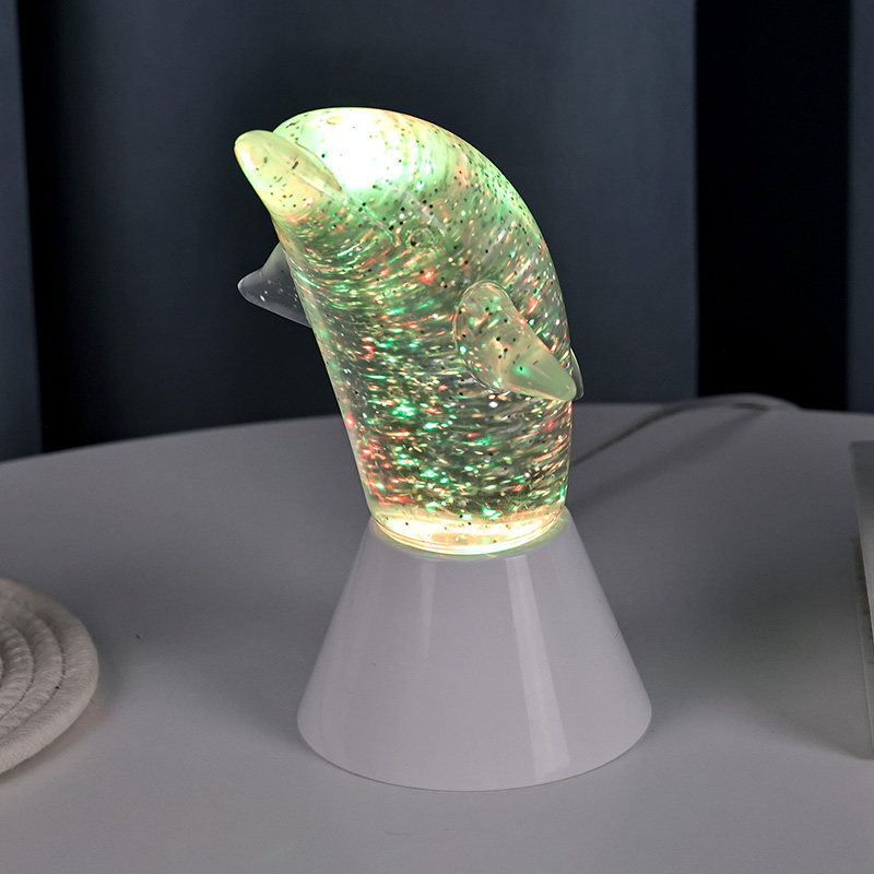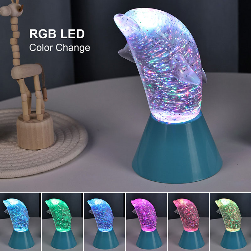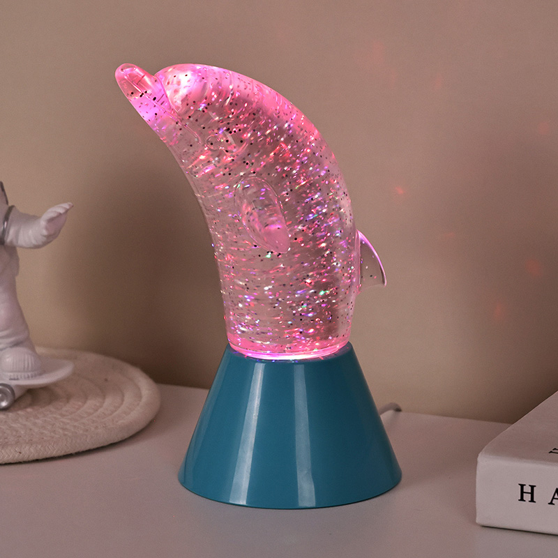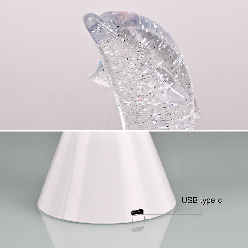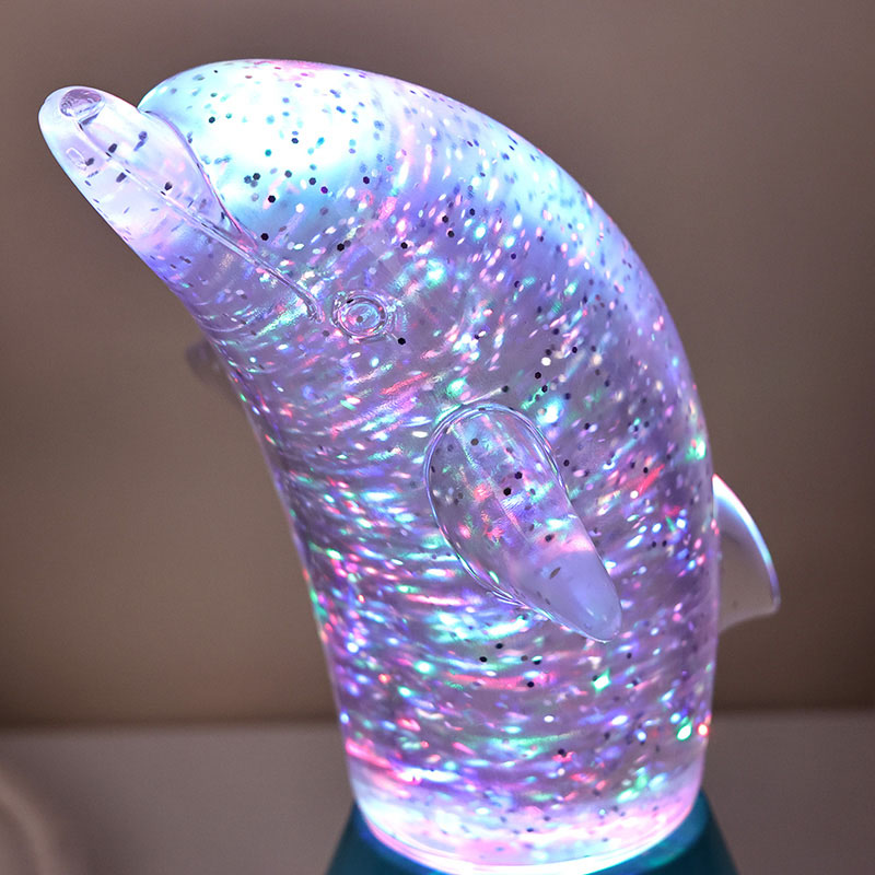 돌고래 키드 기프트 글리터 RGB Nigh Light는 귀여운 돌고래 모양으로 디자인되었으며, 부드러운 라인과 절묘한 디테일로 돌고래의 민첩한 자세를 완벽하게 복원합니다. 투명한 돌고래 등껍질 내부에 스팽글 모양이 불규칙한 움직임으로 인해 아름다운 색상이 반사되어 평화롭고 신비로운 분위기를 연출할 수 있습니다. 이 램프는 볼 때마다 깊은 바다에 있는 듯한 느낌을 줍니다. 그중에서도 자연의 무한한 매력을 느껴보세요. 첨단 RGB 색상 변경 조명 기술을 탑재하여 여러 색상을 자유롭게 전환할 수 있습니다. 웜한 오렌지든, 로맨틱한 핑크든, 차분한 블루든,