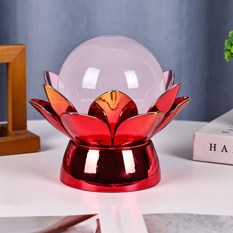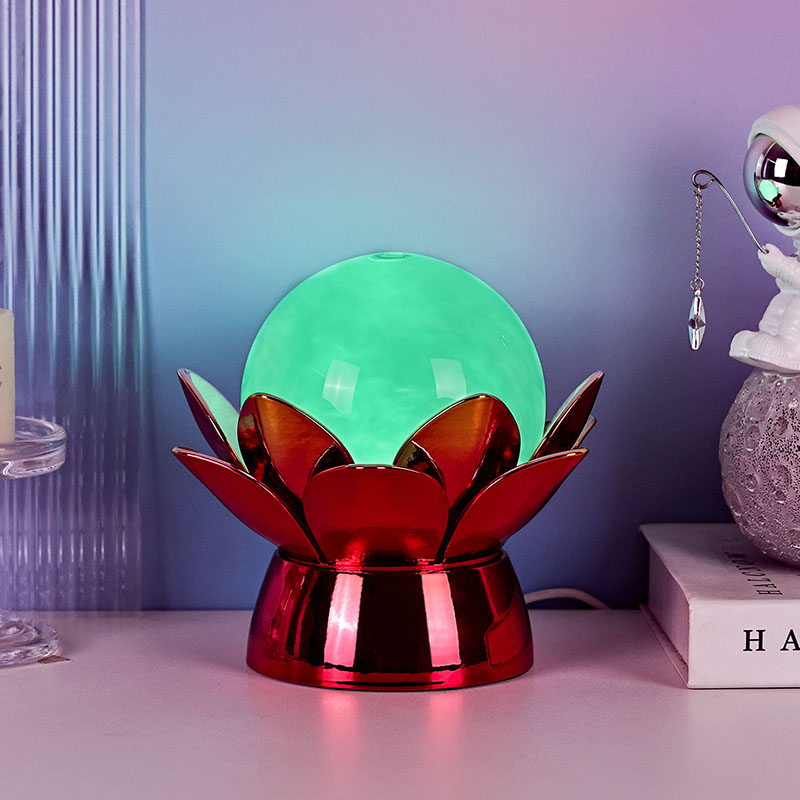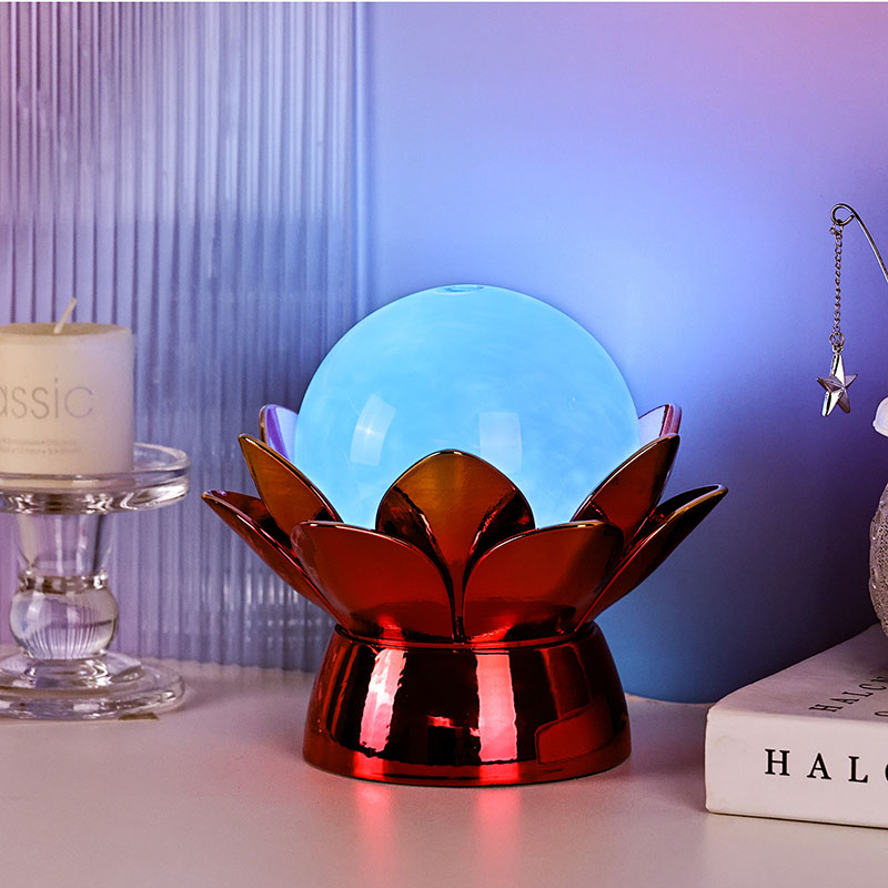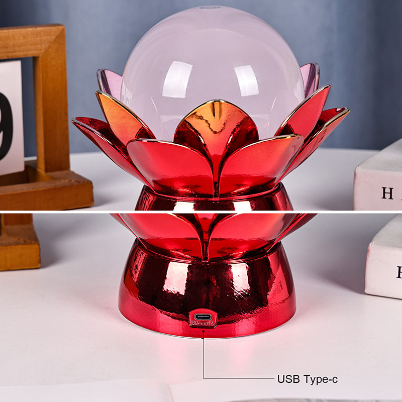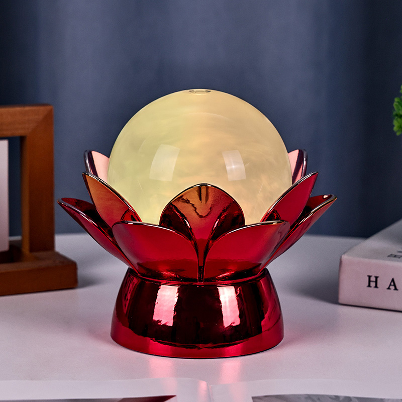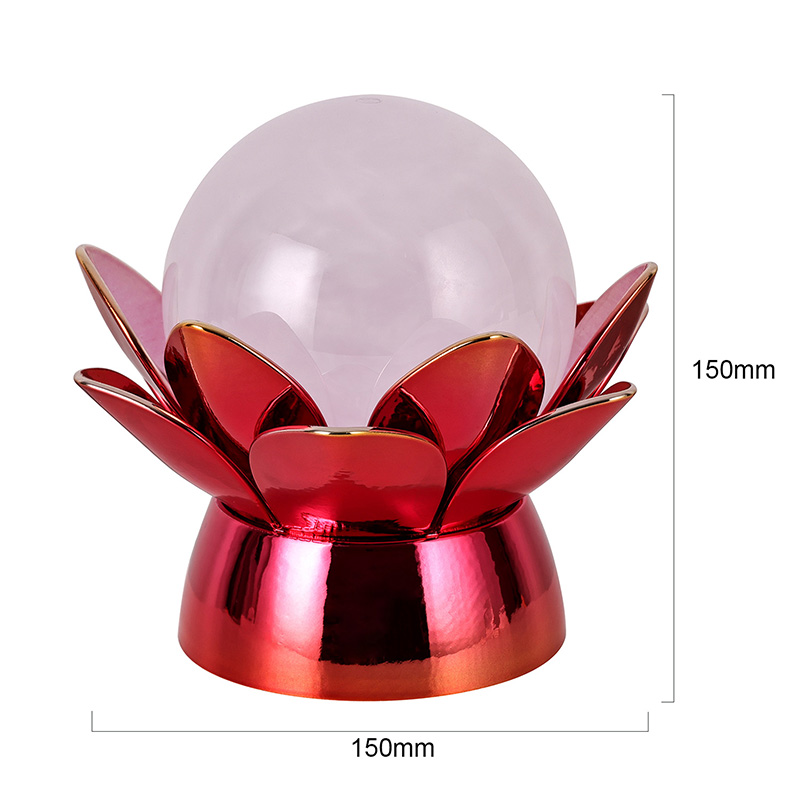 고품질 소재로 제작된 베이스는 빛을 아름답게 반사하는 눈에 띄는 레드 골드 마감 처리된 광택 금속으로 제작되어 외관에 깊이와 풍부함을 더해줍니다. 연꽃 디자인은 미학적 초점일 뿐만 아니라 깨달음, 회복력, 조화를 상징하는 동양 전통에 뿌리를 둔 상징적 의미도 담고 있습니다. 반사 표면은 시각적 효과를 높여 저조도 환경에서도 램프가 빛나게 합니다.