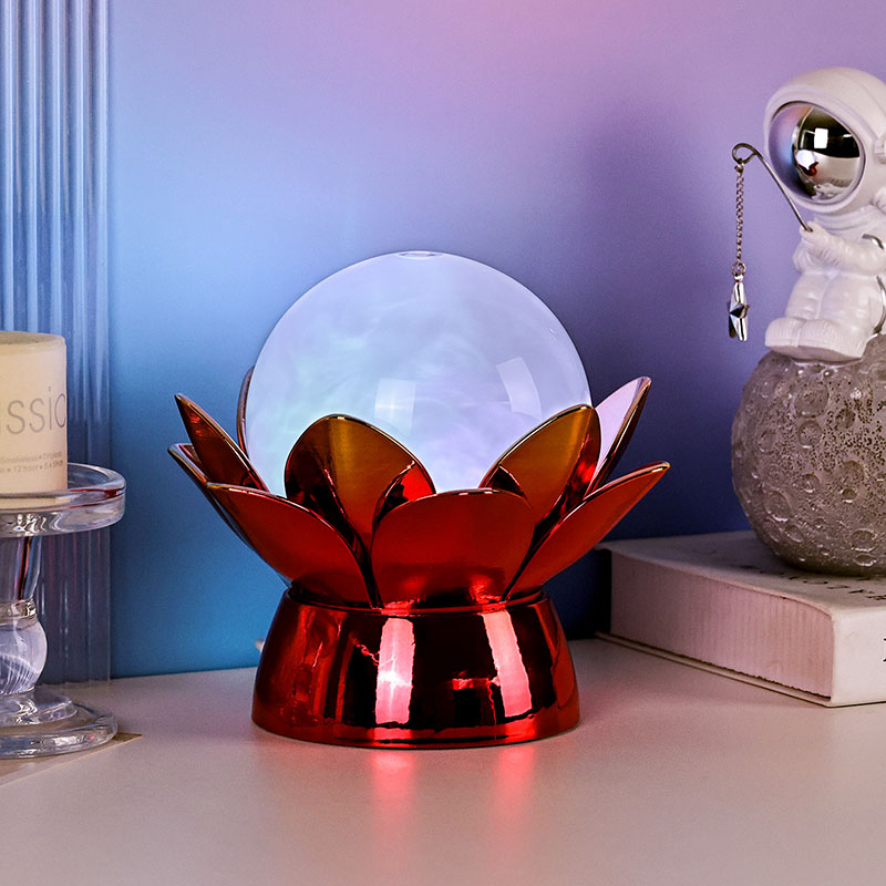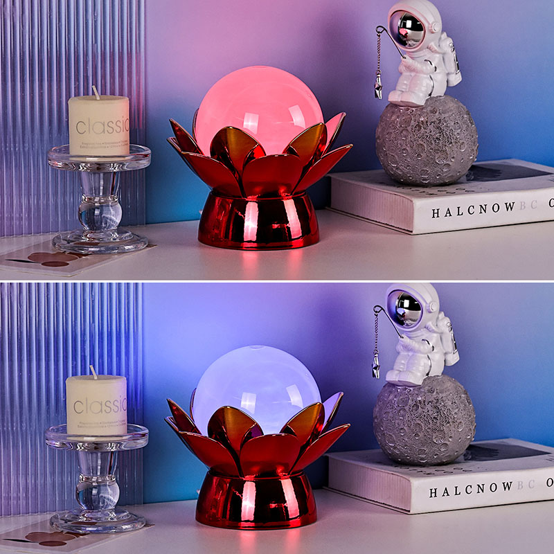 매혹적인 로터스 클라우드 글로브 나이트 라이트(Lotus Cloud Globe Night Light)는 자연에서 영감을 받은 디자인, 차분한 분위기, 현대 기술의 매혹적인 융합입니다. 이 우아한 장식용 램프는 떠다니는 구름을 시뮬레이션하는 특수 액체로 채워진 반투명 유리구가 특징이며, 부드럽게 소용돌이치며 흐를 때 고요하고 영묘한 효과를 만들어냅니다. 신성한 연꽃에서 영감을 받은 이 야간 조명은 피어난 연꽃 모양의 아름답게 제작된 금속 베이스 위에 놓여 있으며 순수함, 평화, 영적 각성을 상징합니다.