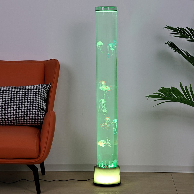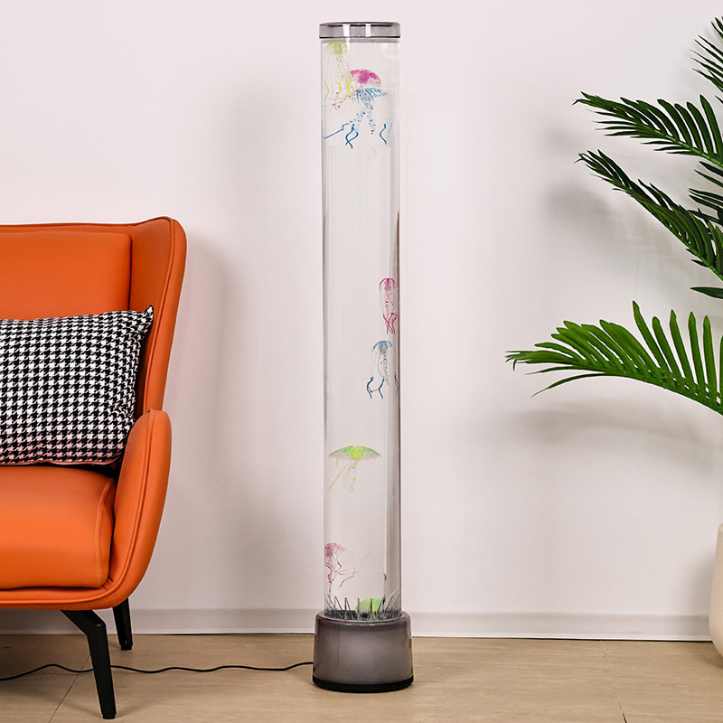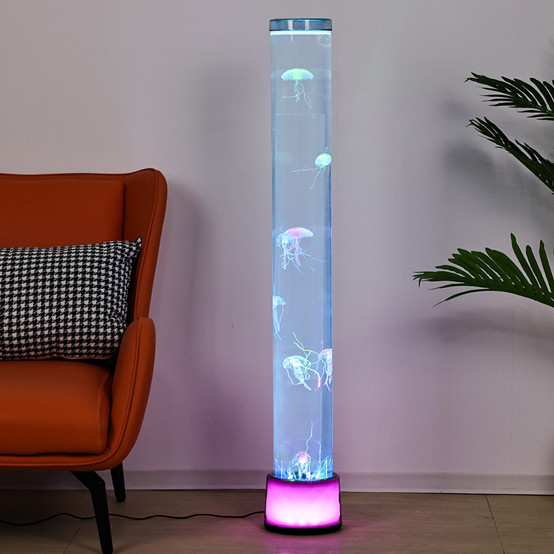 39.5*39.5*115CM대형 RGB 바닥 해파리 램프는 현대 기술과 자연 미학을 결합한 창의적인 홈 데코 제품으로, 몽환적인 조명 효과와 실물과 같은 해파리 디자인을 특징으로 합니다.