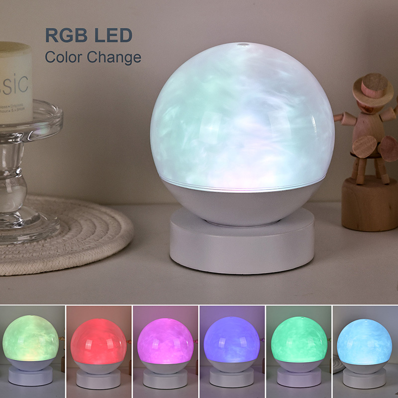 첨단 LED 발광 효율 기술과 내부 특수 광학 설계가 결합된 구 내부의 조명은 천천히 흐르는 구름과 안개를 닮은 역동적인 효과를 만들어냅니다. 색상이 매끄럽게 변해요