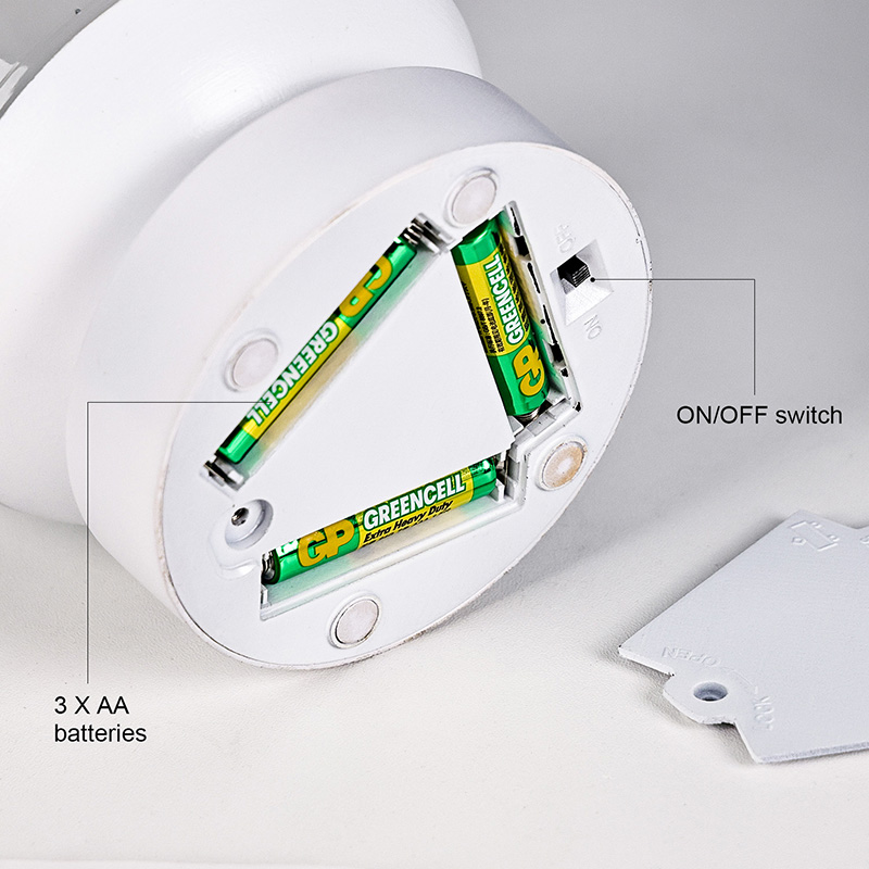 3개의 AAA 배터리로 구동되며 휴대성이 뛰어나고 안전하며 번거롭지 않습니다.