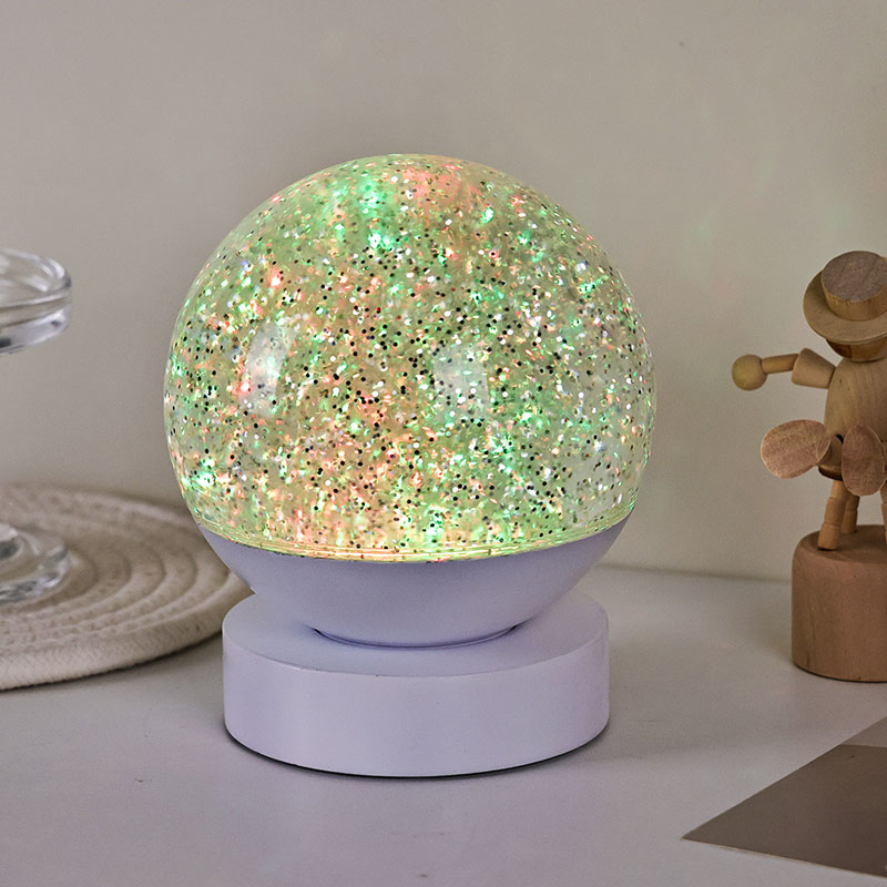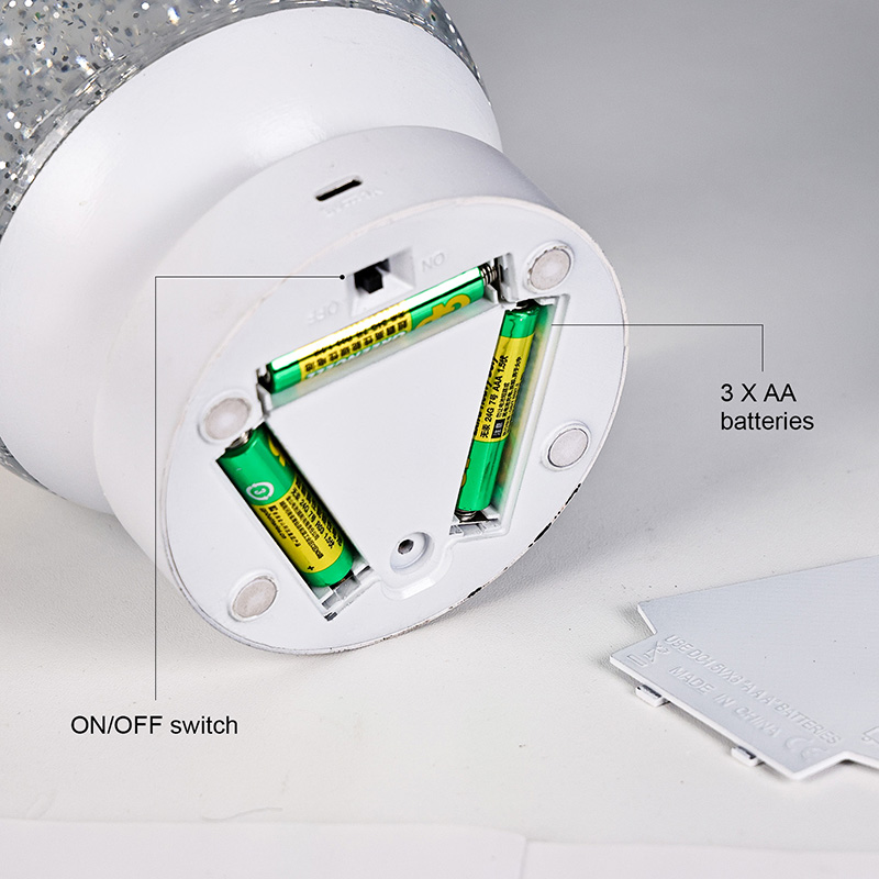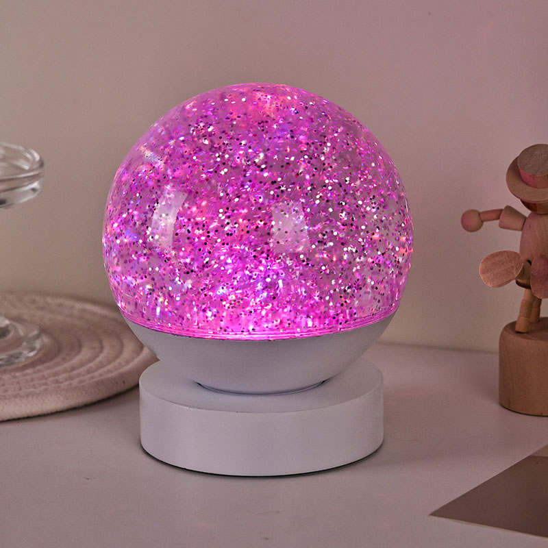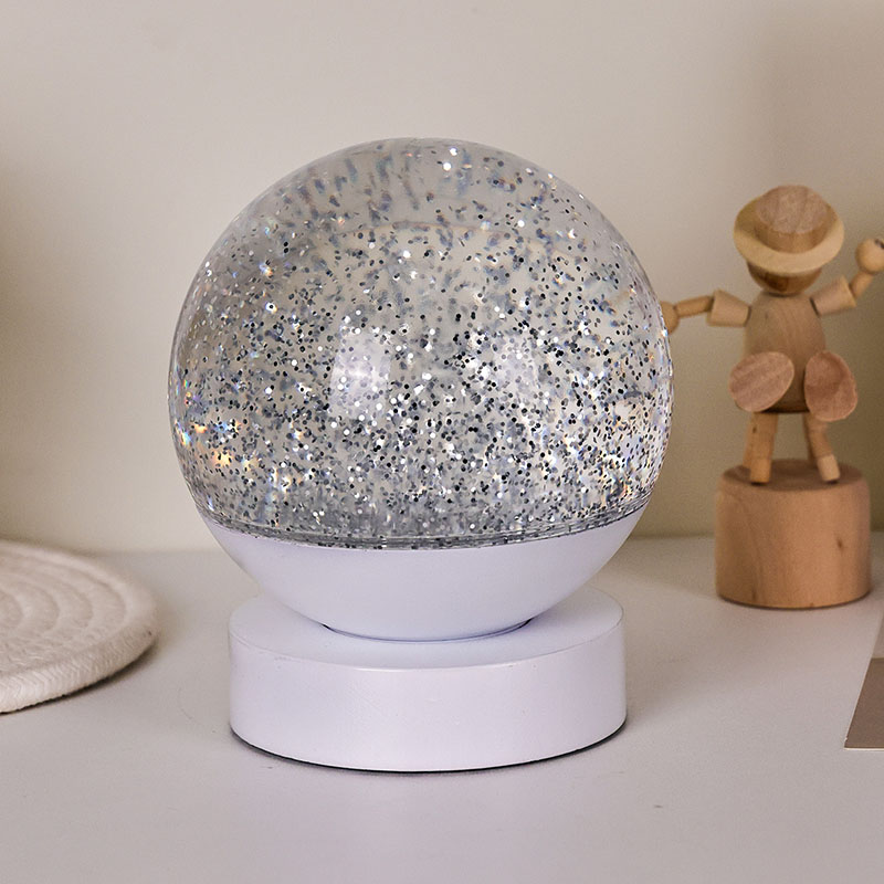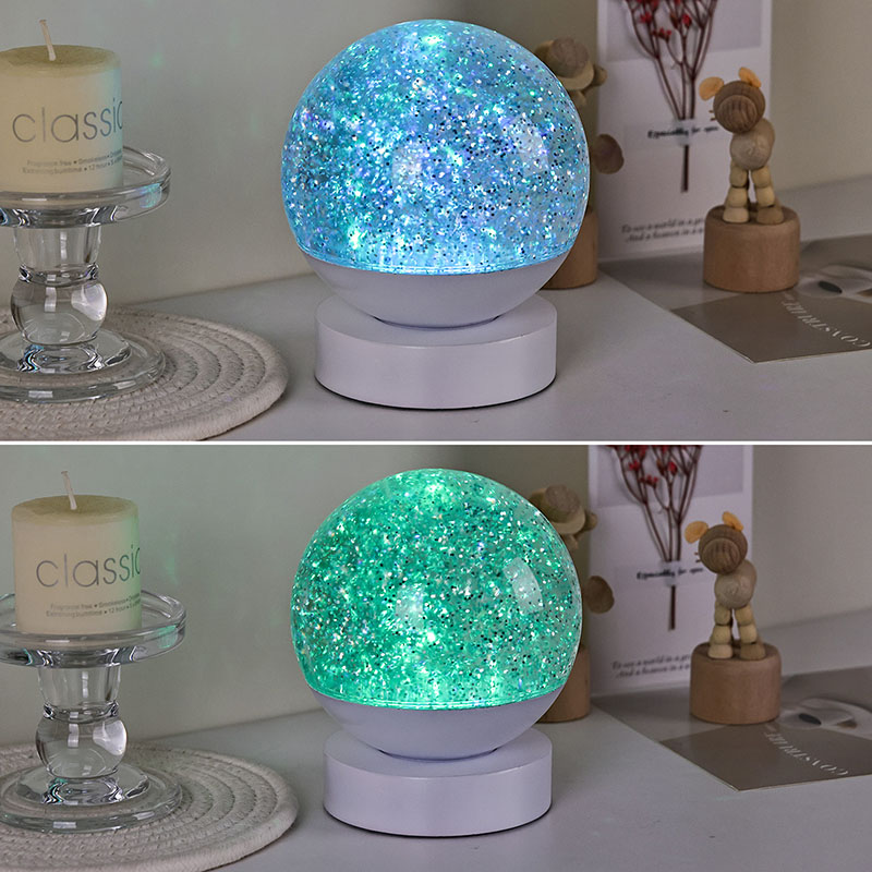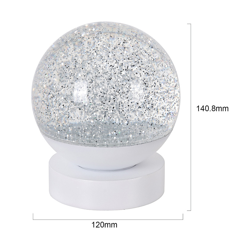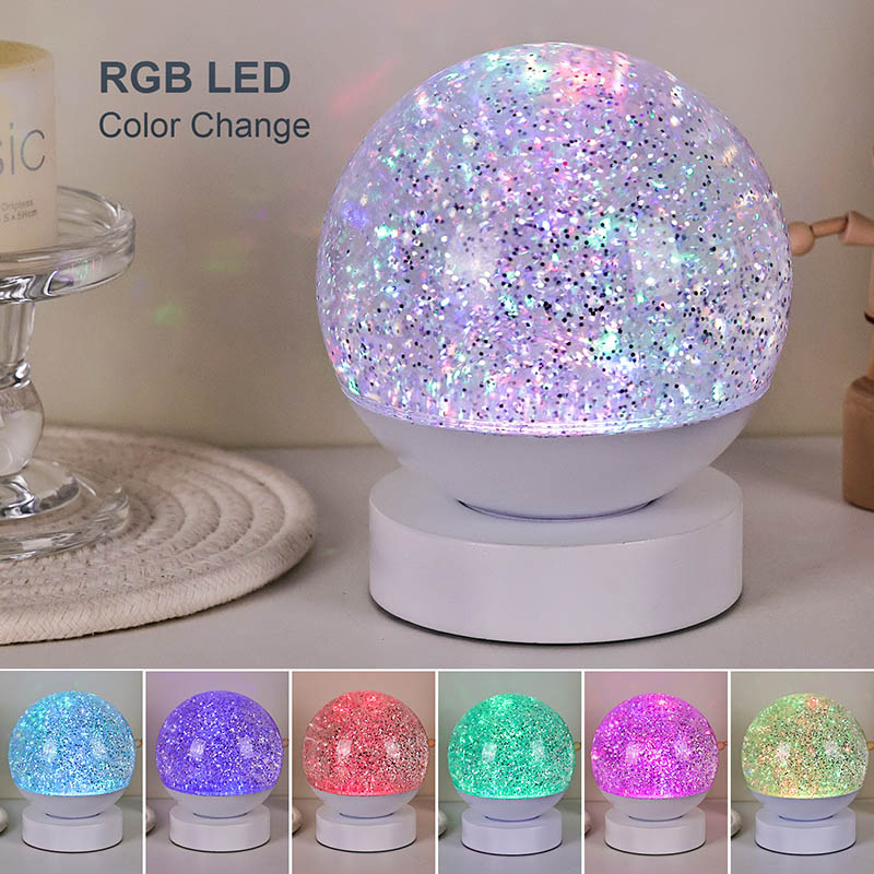 Led RGB 글리터 데코 램프는 고품질 아크릴 소재로 제작되었으며, 빛 투과율이 뛰어난 반투명 구체가 특징입니다. 베이스는 친환경 ABS 플라스틱으로 제작되어 유해물질 없이 안정성과 내구성, 안전성을 보장합니다. AAA 배터리 3개(배터리 별도 판매)가 내장되어 있어 전원 콘센트가 필요 없고 사용이 편리합니다. 침대 옆, 책상 옆 또는 어린이 장난감 코너에 배치하기에 적합합니다. 간단한 터치 스위치로 조명을 쉽게 켜고 끌 수 있어 어린이도 혼자서 조작하기 편리합니다.