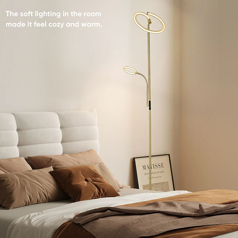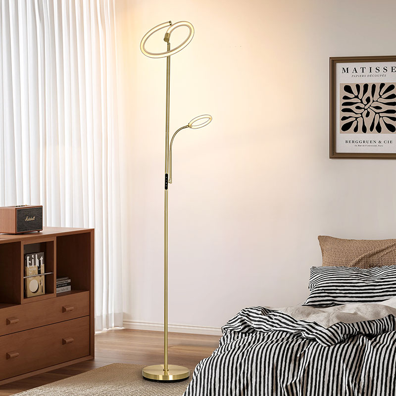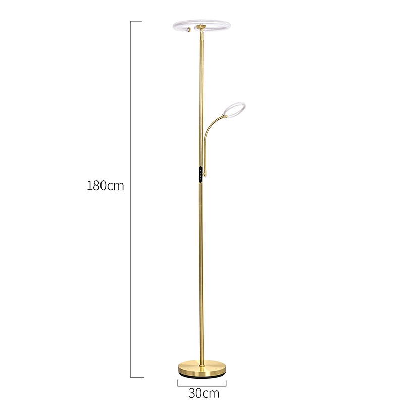 거실용 럭셔리 골드 LED 플로어 램프는 고품질의 황금색 금속 소재로 제작되었으며 심플하면서도 고급스러운 전체적인 디자인을 자랑합니다. 금속 소재를 정밀하게 연마 및 가공하여 매끄럽고 섬세한 표면과 은은한 광택으로 고귀하고 우아한 분위기를 연출합니다. 거실, 침실 또는 어디에 배치하든
