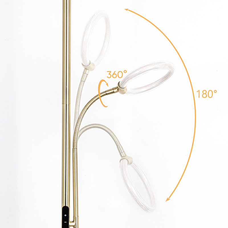 거실용 럭셔리 골드 LED 플로어 램프는 고급 실리콘 튜브 360도 조명 기술을 갖추고 있어 부드럽고 균일한 빛을 방출하여 전체 공간을 효과적으로 조명합니다. 실리콘 튜브는 유연성과 내구성이 우수하며 다양한 환경 조건을 견딜 수 있어 안정성과 안전성을 보장합니다.
