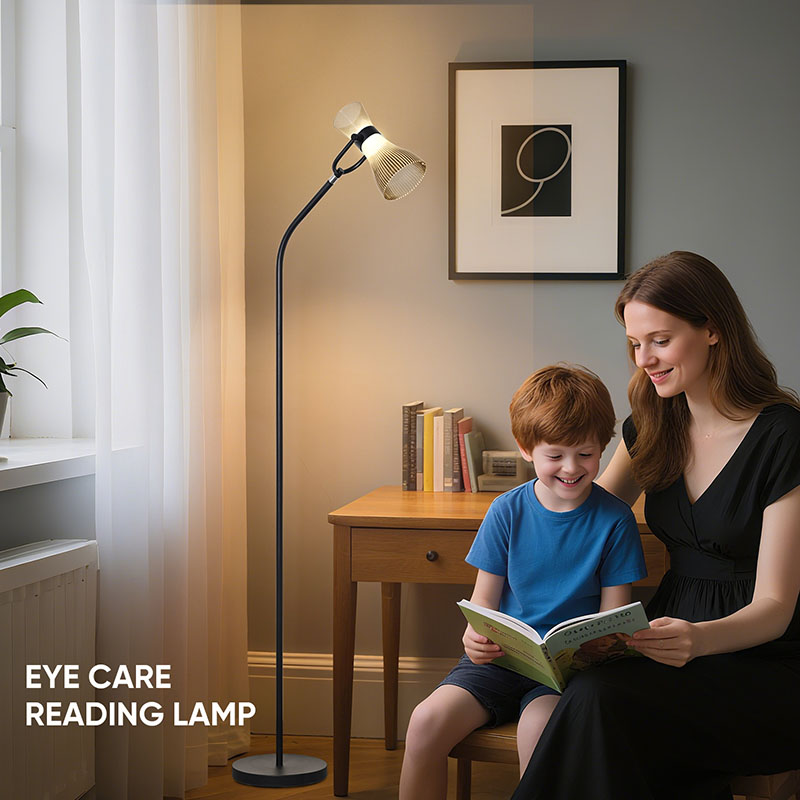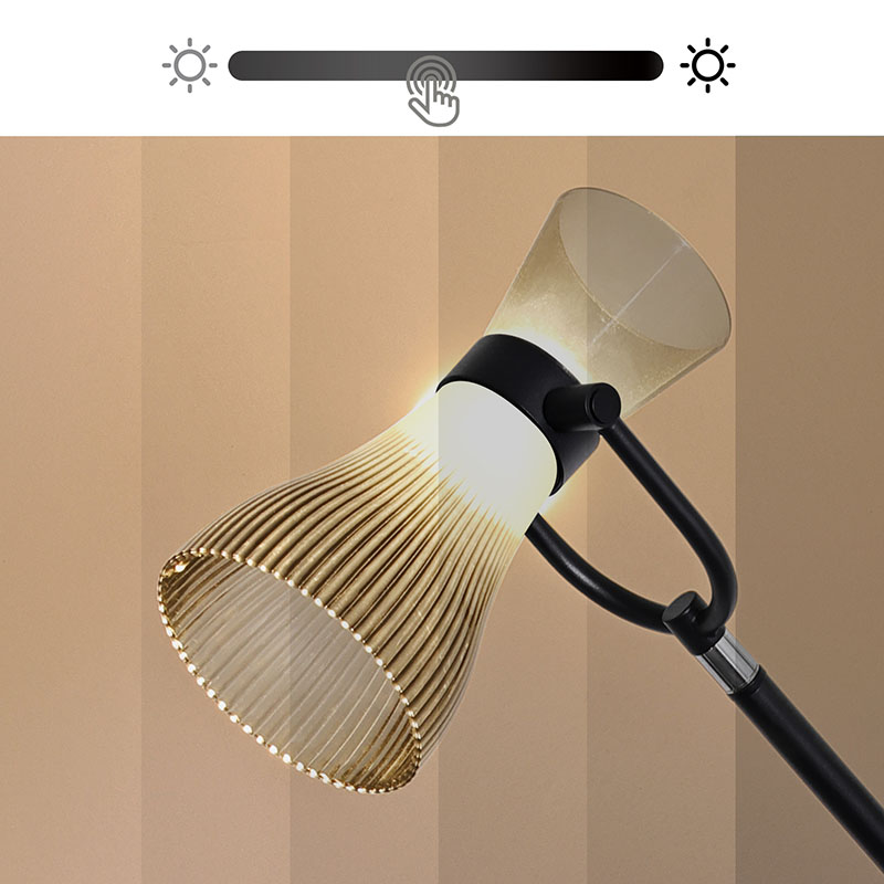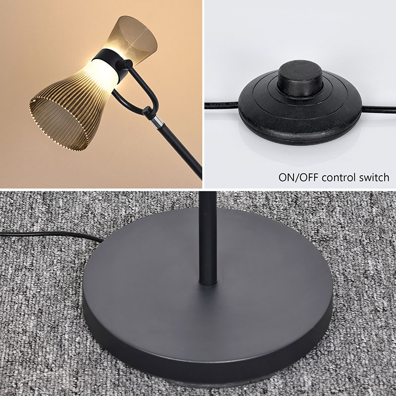 유리 갓이 있는 현대적인 LED 플로어 램프에는 부드럽고 밝은 빛을 방출하는 고급 LED 광원이 장착되어 있어 눈을 효과적으로 보호하고 장시간 눈 사용으로 인한 피로와 불편함을 줄여줍니다.