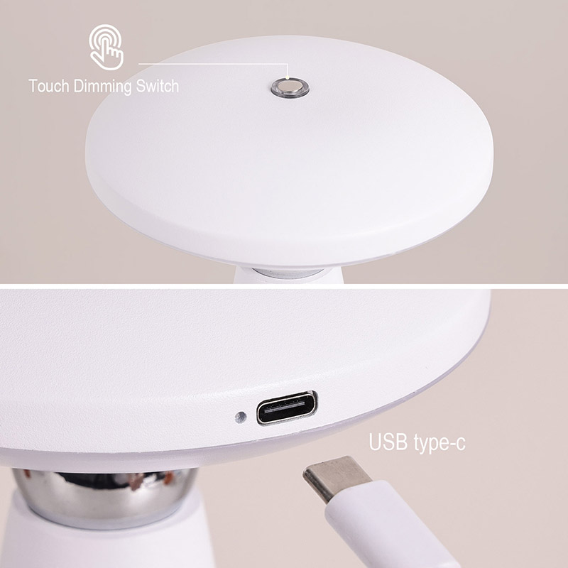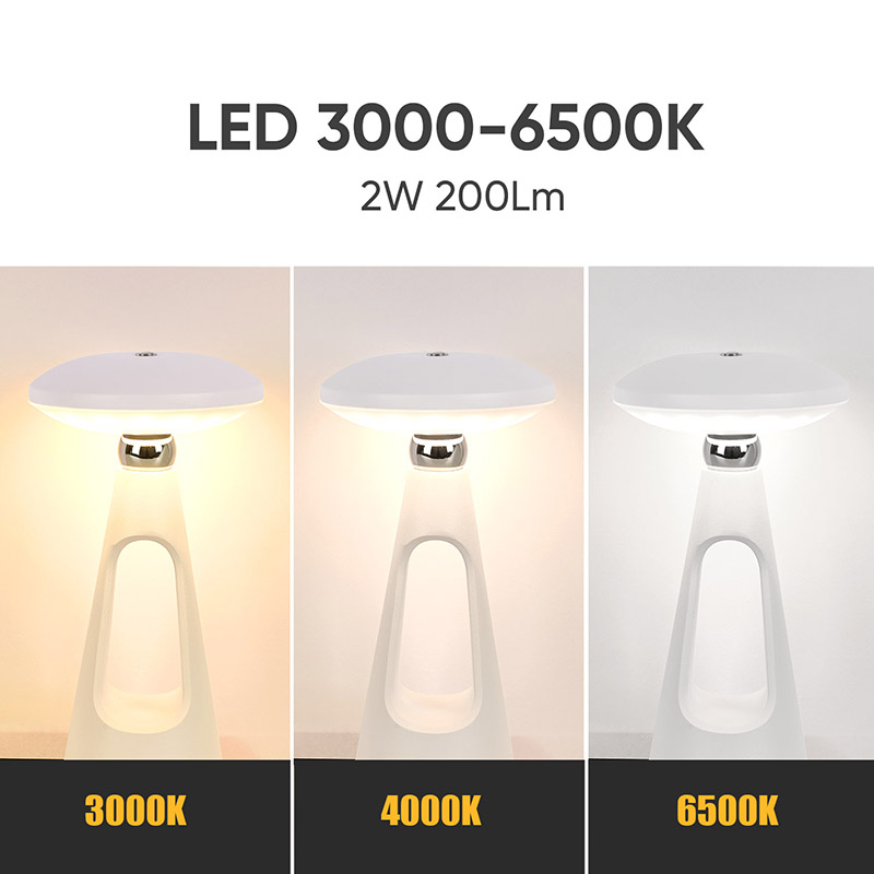 충전식 배터리가 장착된 버섯형 LED 책상 램프에는 부드럽고 따뜻한 빛을 방출하고 빛의 강도를 조절할 수 있는 고급 LED 광원이 장착되어 있습니다. 무한한 조광으로 눈을 효과적으로 보호할 수 있습니다. 간단한 조작을 통해