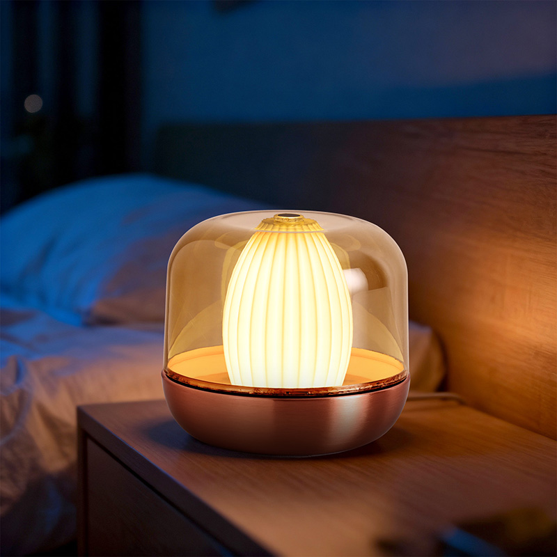 이 따뜻한 빛을 내는 야간 조명의 디자인 영감은 자연과 건축 미학의 융합에서 비롯됩니다. 둥글고 통통한 전체적인 모양이 세심하게 조각된 호박석을 닮았습니다. 책상이나 테이블 위에 놓으면 쉽게 시각적인 초점이 됩니다. 외부 레이어에는 고투명 커버가 적용되어 내부 광원을 보호할 뿐만 아니라 굴절을 통해 독특한 빛과 그림자 레이어를 만들어 몽환적인 시각적 효과를 연출합니다.