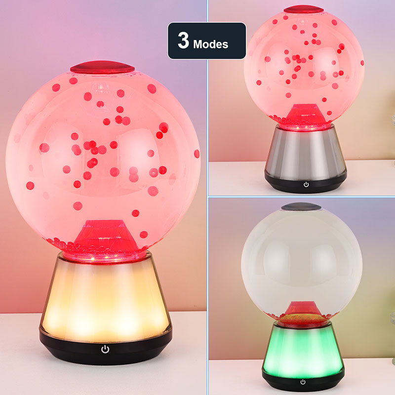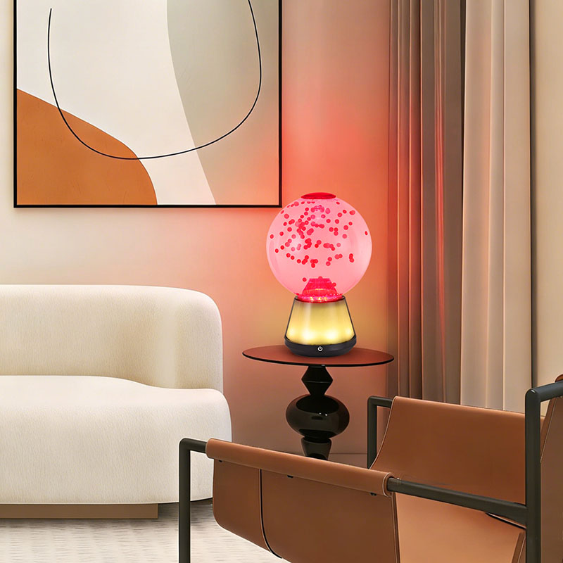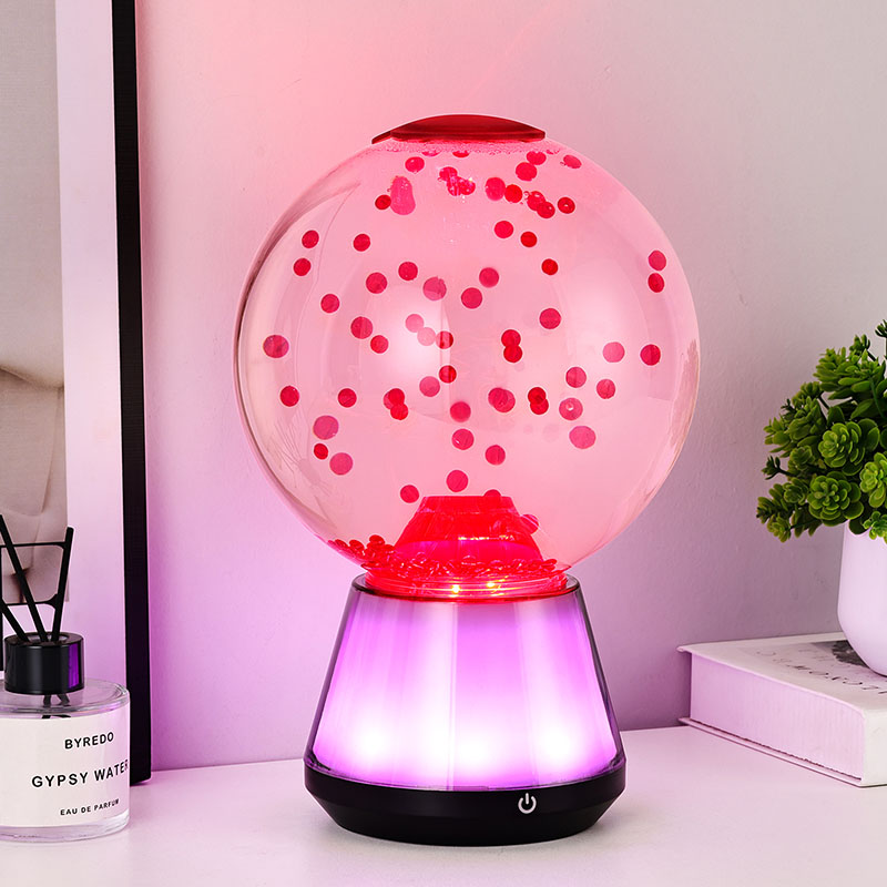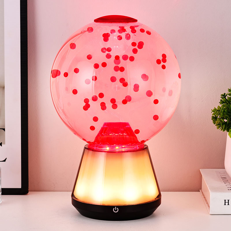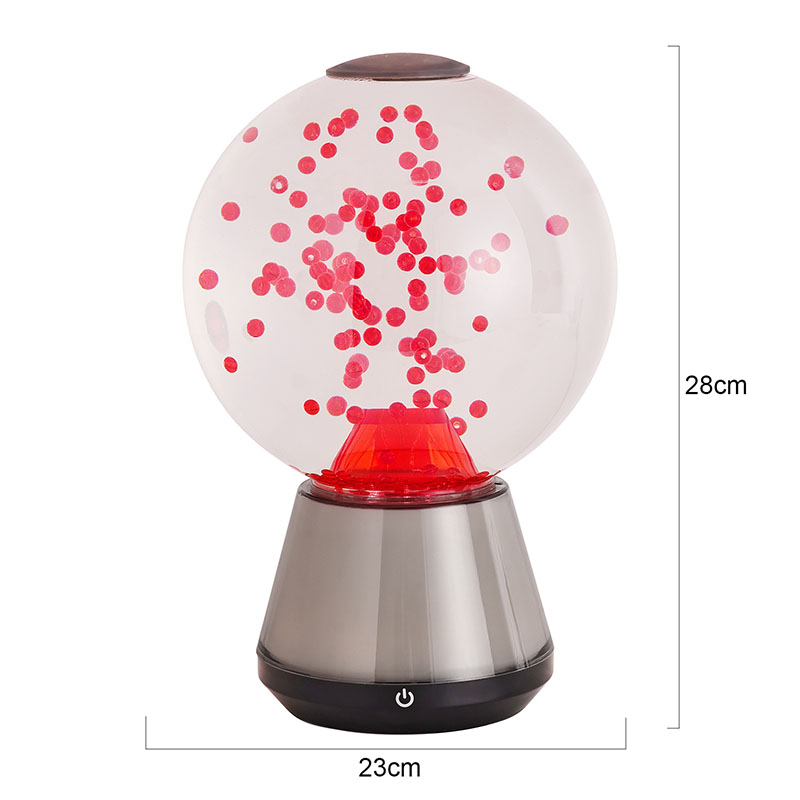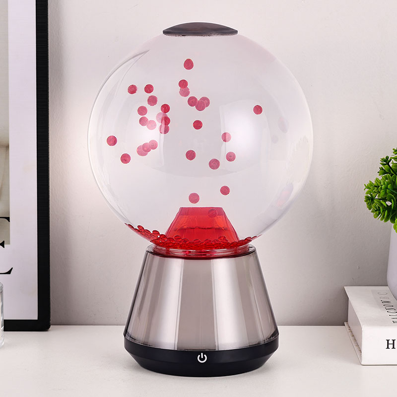 램프는 부드러운 광택 마감 처리된 둥근 공 모양의 디자인으로 빛이 표면 전체에 아름답게 반사됩니다. 지구 내부 수백 개의 작은 빨간색 구체가 조용한 순환 펌프에 의해 구동되는 리드미컬한 파도로 위로 떠오릅니다. 이 동작은 화산 활동을 시뮬레이션하여 지구 깊은 곳에서 용암이 솟아오르는 듯한 느낌을 줍니다. 베이스는 빨간색 주황색 노란색 파란색 보라색 및 녹색을 포함한 다양한 색상을 순환하는 다채로운 RGB 조명으로 빛나며 끊임없이 변화하는 시각적 경험을 제공합니다.