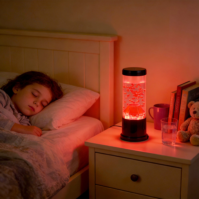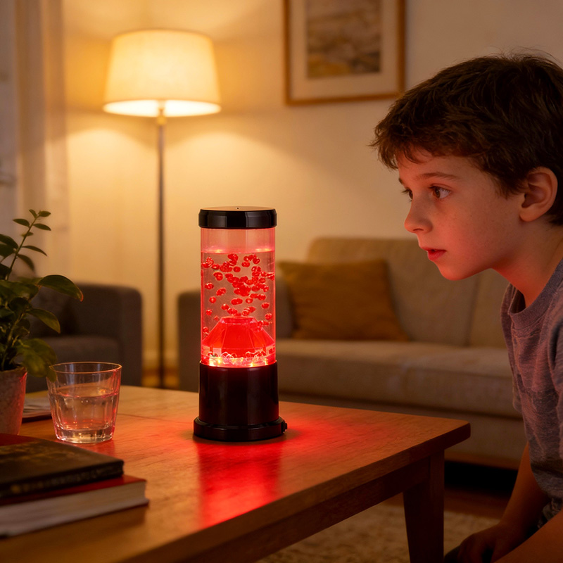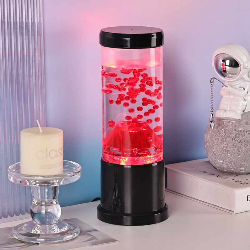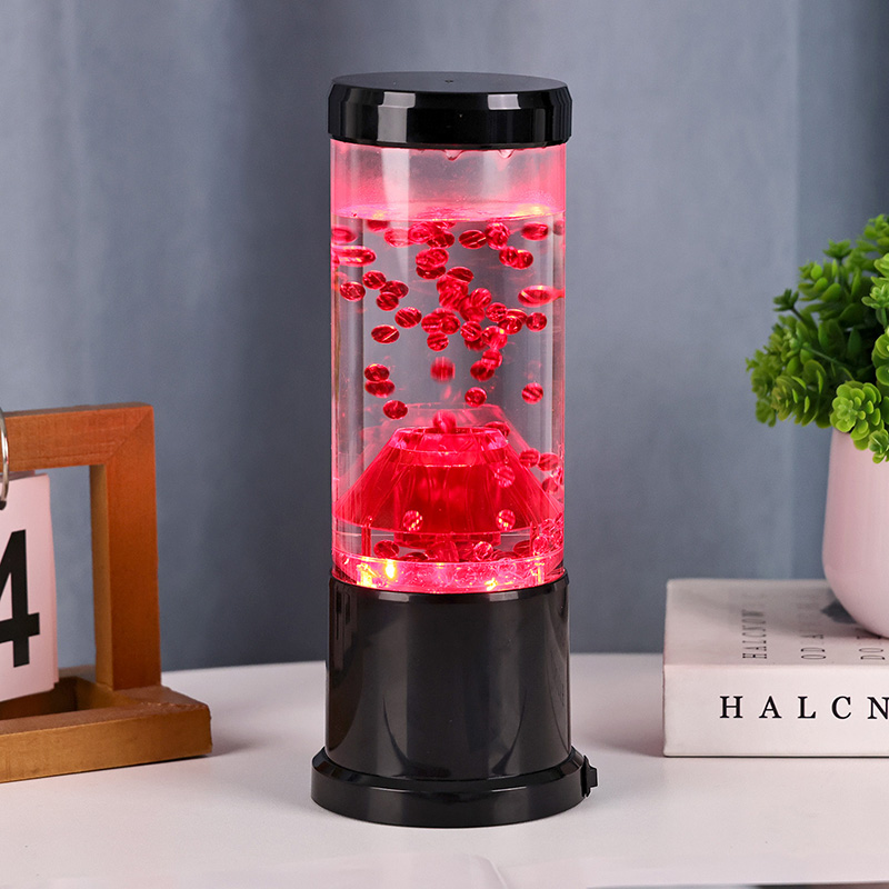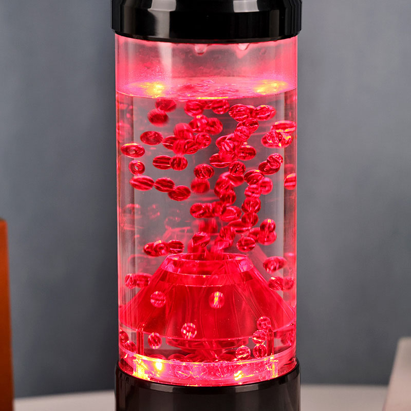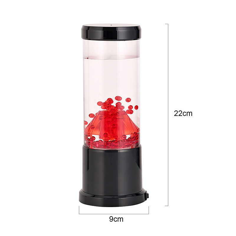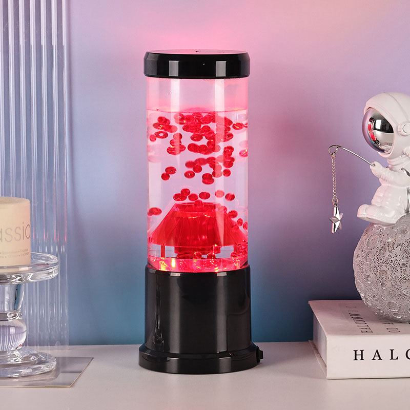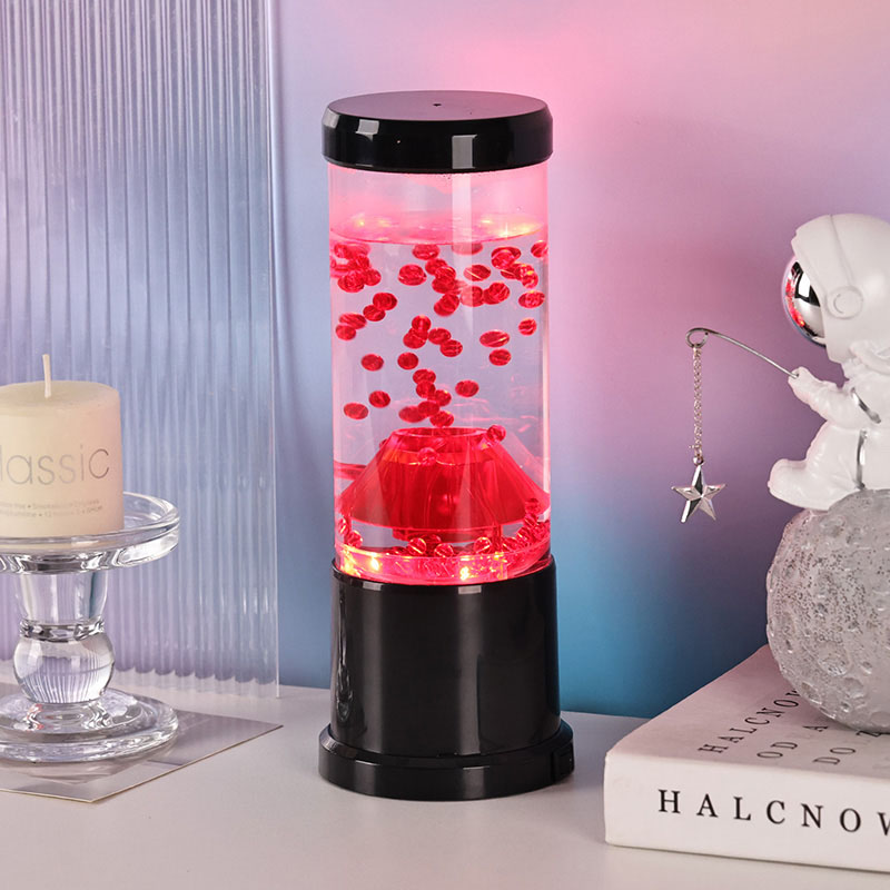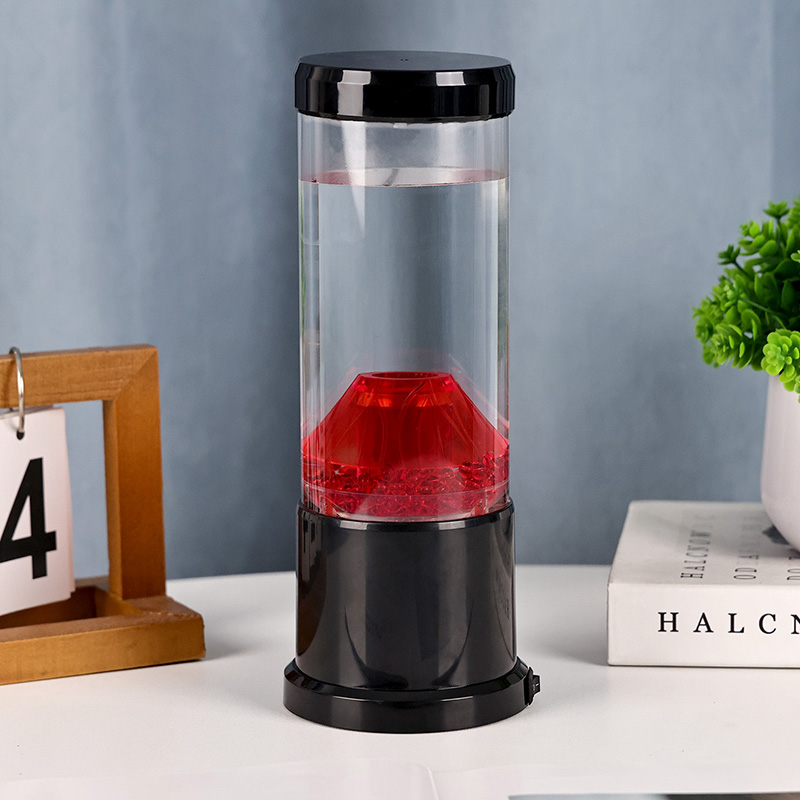 야간 조명의 중앙 부분은 화산 분화구를 닮은 투명한 기둥입니다. 이 기둥 내부에는 지각 내부를 흐르는 녹은 용암을 연상시키는 생생한 빨간색 구체가 표시되어 있습니다. 이 구체는 투명한 액체 내에서 우아하게 떠다니면서 역동적이고 끊임없이 변화하는 시각적 효과를 만들어냅니다. 빛이 투과하면서 따뜻하고 매력적인 빛을 발산하여 어떤 방에도 아늑한 분위기를 조성하기에 적합합니다.